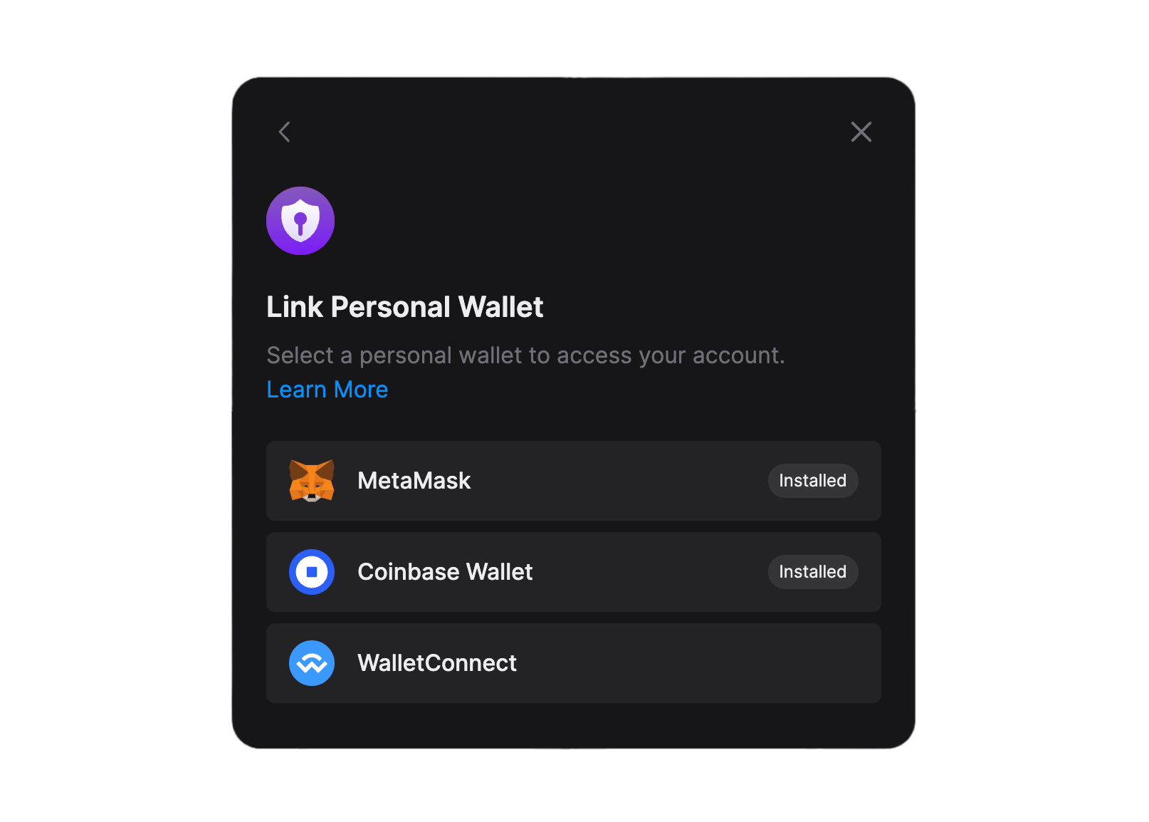 personalWallets: [metamaskWallet(), coinbaseWallet(), walletConnect()],